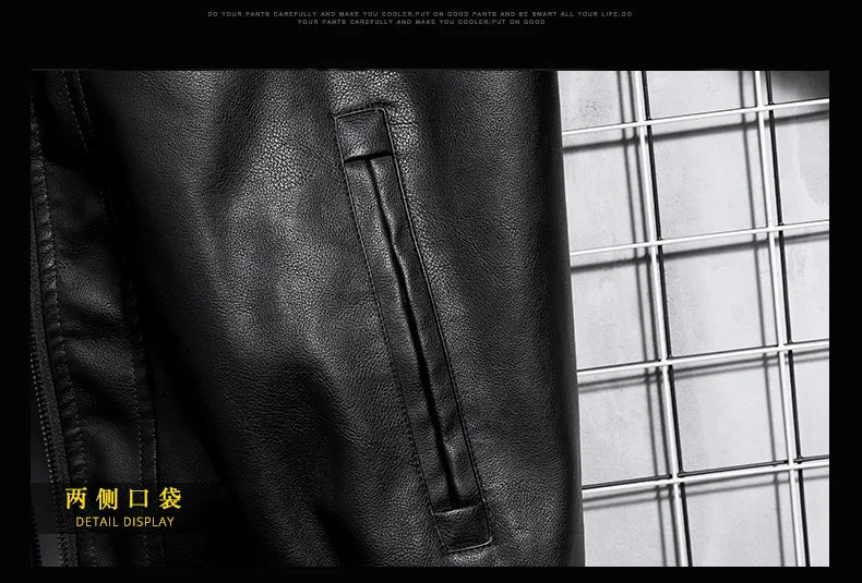🧥 Men’s Hooded PU Leather Jacket – Winter Motorcycle Coat
